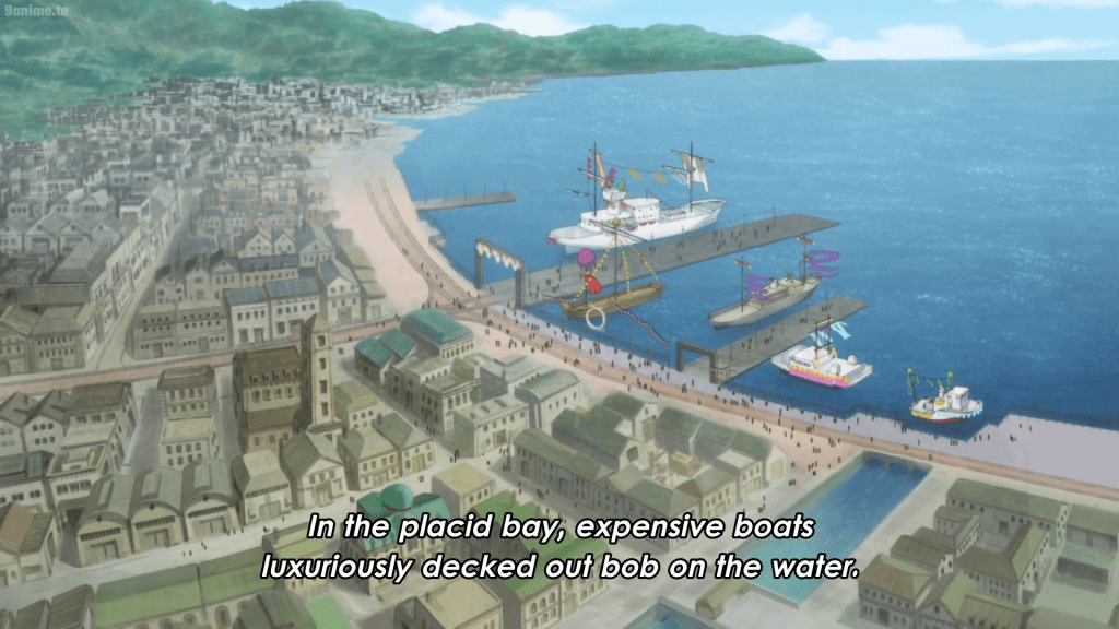 I do want to end with some other notes. Despite the ugly animation, the show’s story is very captivating, and at times it does clever things within the statutes of limitations. The juxtaposition of the chaos and inferno on the armored train with the calm, serene Boat Festival in the capital is effective in helping us understand how detached capital residents are from the world outside. This is further reinforced by Kira talking about how gaudy her father’s boat is decorated.