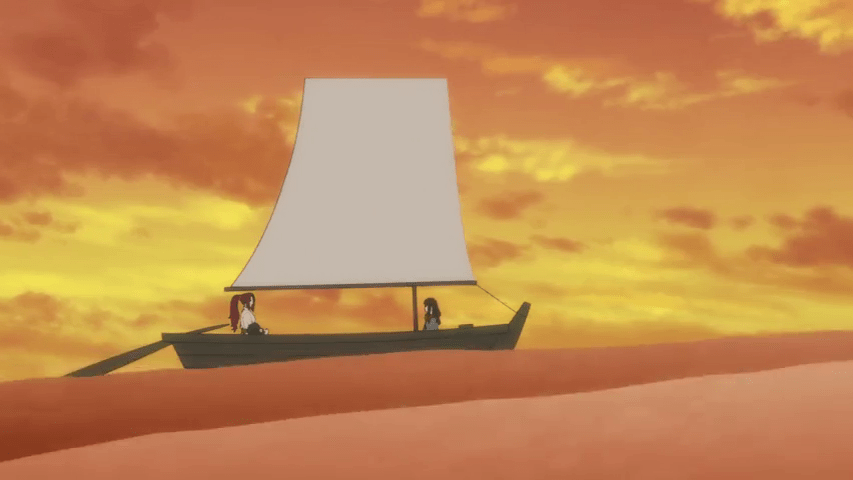 Yet Koushi’s adoptive father has already said he would provide Koushi with anything he requires, including skyfire, so why would Koushi even consider this offer? Yet he practically leaps at the chance. Or at the bay, where the massacre happened and the team must flee onto a boat. When they arrive, all of the boats are in bad shape, and the sails are tattered well beyond use.