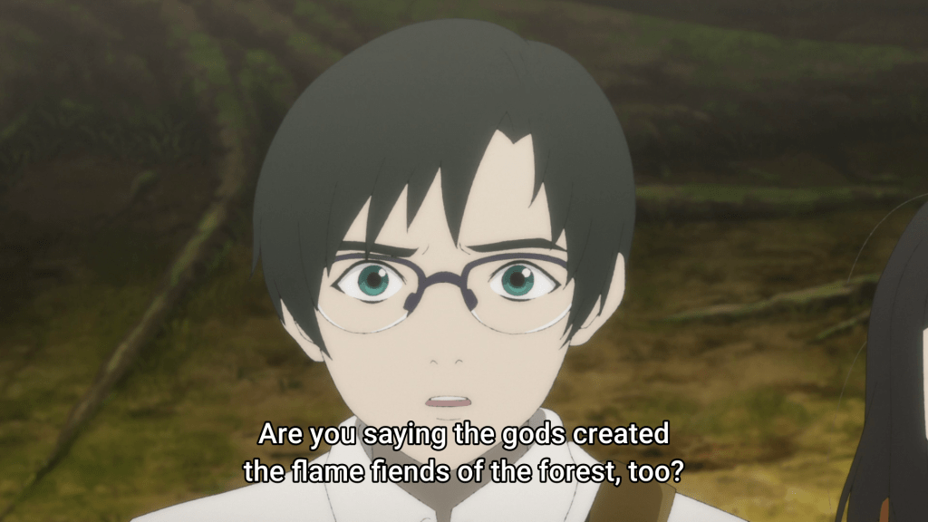 There’s also the idea of those left behind by common society (the rejected individuals). Akira and the Fire Hunter Koushi worked with are rejected by the Fire Hunters of the Capital. Kun is rejected by the Spiders for being unaffected by the Fire Bugs, and the Treefolk who help Koushi and Touko are rejects of their own species. All those who suffer in this way are being pulled into play for the common cause of (supposedly?) stopping the Flickering Flame’s wrath. I am a big fan of this kind of characterization so it’s a shame the plot is sagging under its own weight now.