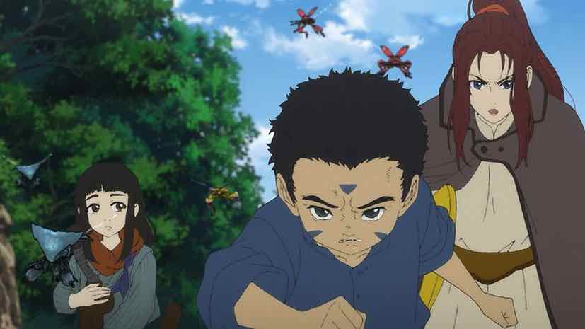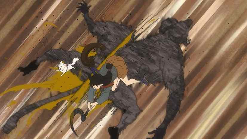 Speaking of Kun, he arrives with an army of beetles and other insects to tear apart Hibari’s remaining shadows, proving that he’s far more capable than previously thought. If all Spiders can do things like this, let alone control true fire, then the Clans really have a serious problem on their hands. Even so, Hibari has had enough of this nonsense and uses the wind to blast everyone away, leaving Touko and Akira’s hound, Temari to be rescued from the canals by Hibiko. This feels way too coincidental, since Hibiko almost immediately rushes off to save… someone? Possibly the Tree People? The fact that a fiend arrives moments later with the young child Touko met in the Forbidden District in its jaws suggests as much, but if that’s her goal, then why scurry off when a threat is right there?! I suppose we’ll have to wait to suss out the motivations of this weird girl.