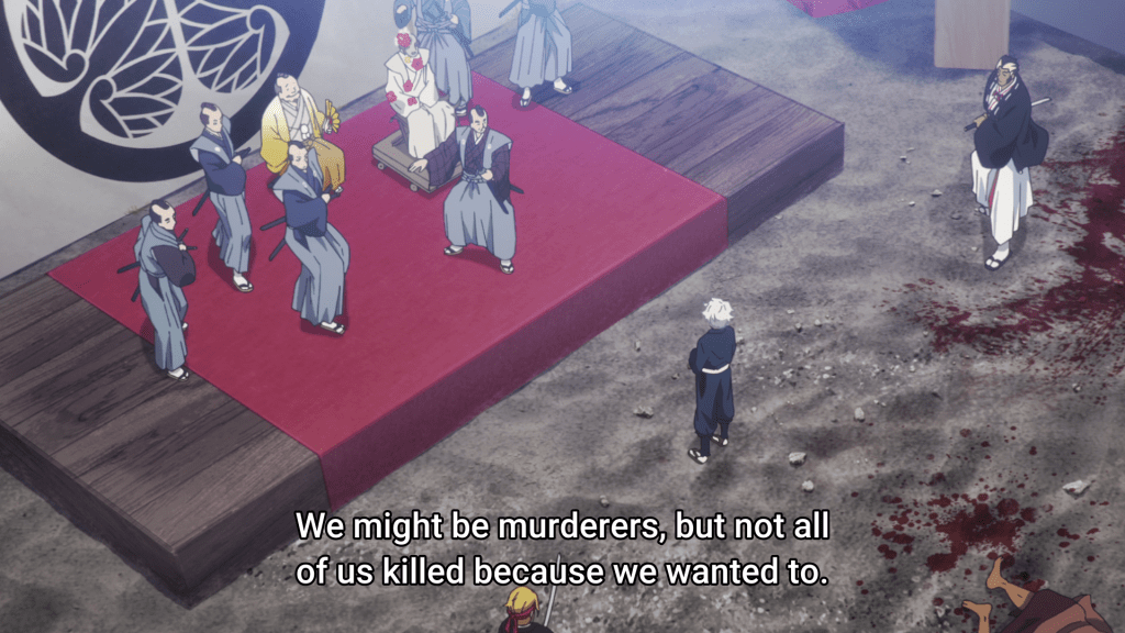 The bloodbath of the prisoners culling their numbers exists to give us our core ten characters, but it also brings up a snag in Sagiri’s thought pattern. She assumes her ability to kill without fear can be honed if she’s working with scum of the Earth criminals who deserve to die. Late in the carnage, Gabimaru throws out a line about how it’s natural to not want to kill if you don’t have to. While some of the criminals on death row are heinous people on the inside, what happens when some of them are this way simply because they were forced to be? Hopefully we get an interesting mix of “chose to be this way” and “forced to be this way” in our set of ten so it causes dramatic tension.