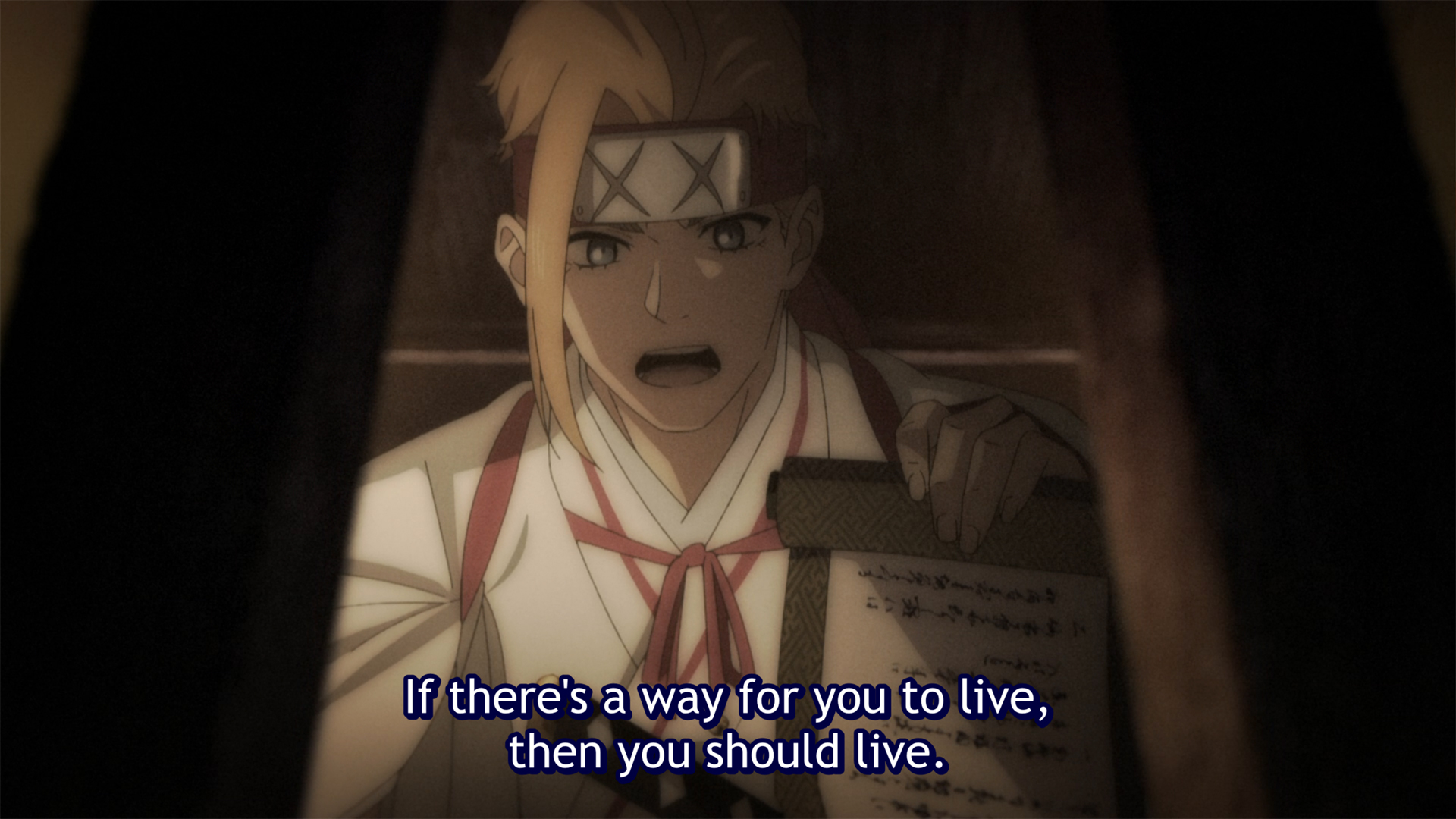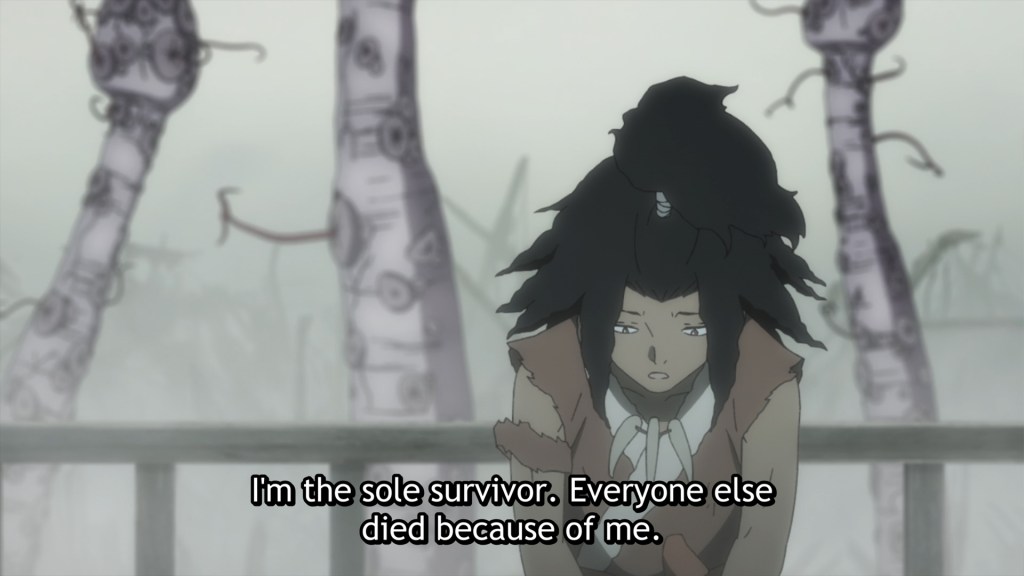 The other story we focus on in episode 5 is that of Tenza and Nurugai. Unlike the other criminals on the island, Nurugai is innocent who’s consumed by guilt for the role she inadvertently played in the slaughter of her people. Tenza’s thinking seems to be that if he could safeguard Nurugai long enough to secure the elixir, she could be pardoned and have a new chance at life.