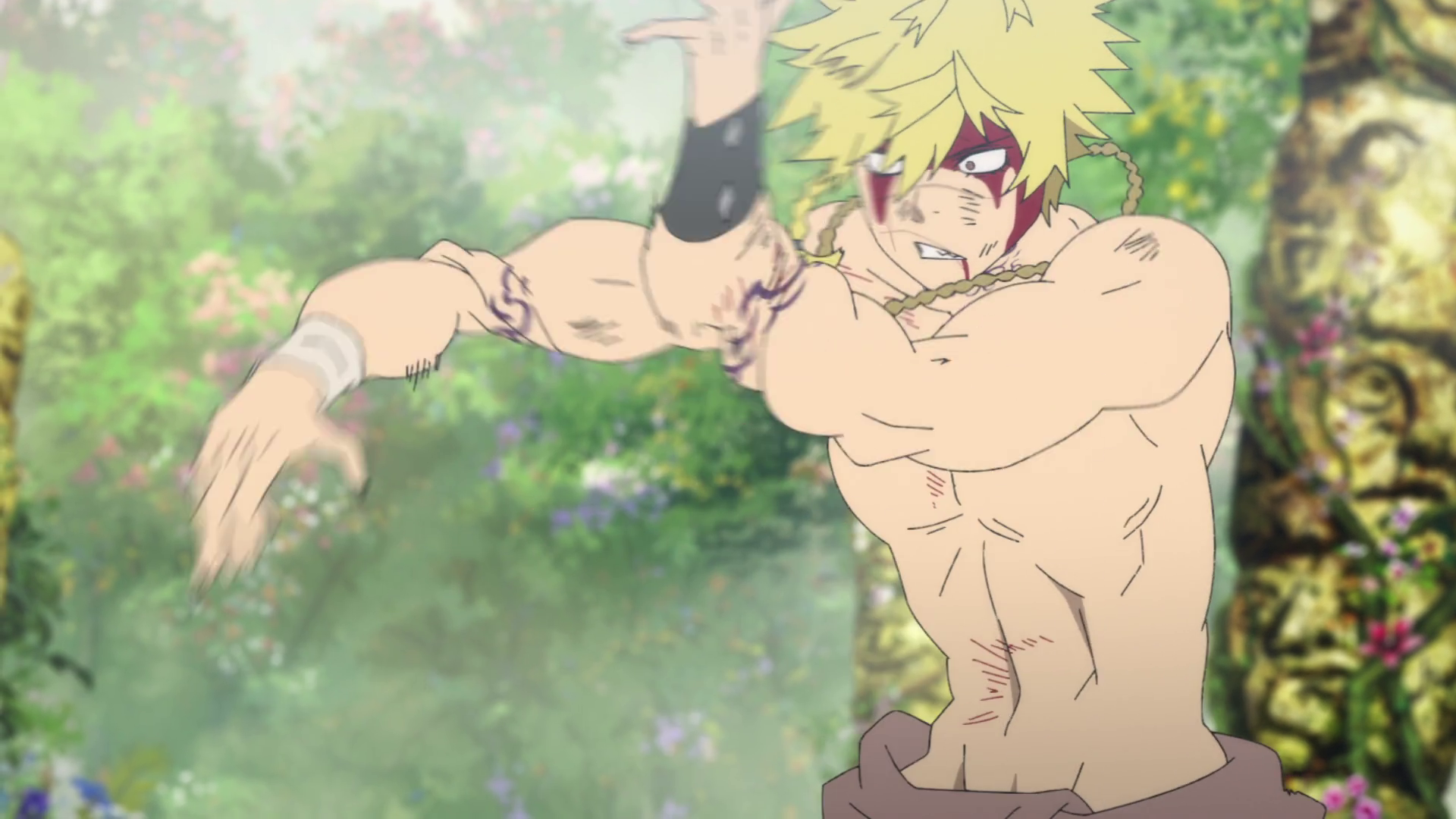 Lastly, there are the revelations that the Soshin and Tensen power up through sex. Considering that Gabimaru is immediately super strong and blond brother seems to be endlessly increasing his tao by existing, this doesn’t seem like it’s going to affect the protagonists at all. So its inclusion as a concept seems to be just for its shock value – to titillate viewers seeing the Tensen have sex, and to make the Soshin more villainous because their goal is to rape Mei so they can get stronger. I suppose it’s just another way for the show to try and make an edgy name for itself, but to me it feels random and offputting in the middle of this low-tier shonen punchfest.