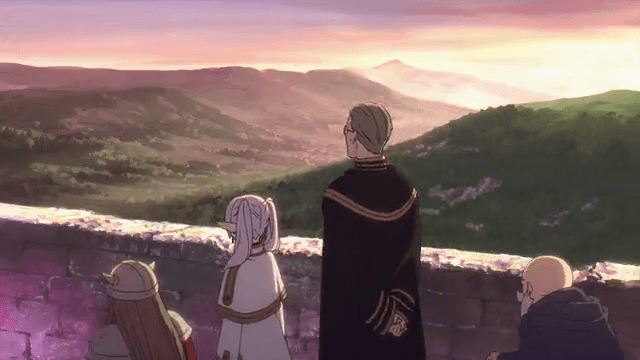 Also strongly contributing is the very deliberate pace of the story. Characters take their time to walk places. Plenty of time is spent on reminiscence. If there’s a nice background, the shot will pan over it slowly. There are stretches without any dialogue, just scenes of travel of quiet companionship. It really seems to be encouraging you to slow down and take the journey at Frieren’s pace – and she doesn’t hurry because she has all the time in the world.