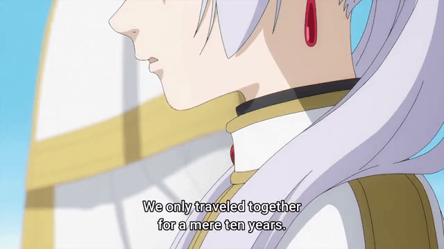 Frieren, an elven mage, and her companions (Himmel the human hero, Heiter the human priest, and Eisen the dwarven warrior) have just returned to the royal capital after defeating the demon king. After the celebration, they view a meteor shower and Frieren vows to view it again with them in 50 years’ time. When she returns, she finds her companions have aged greatly, while she, with the long life of the elves, is unchanged. After viewing the shower, and later attending the funeral of Himmel, she realizes how short the lives of humans are, and decides to learn more about her companions during future journeys. 20 years later, she meets an aged Heiter, who asks her to research some life-extending spells and to teach magic to Fern, a young human girl with a strong affinity for magic. Frieren agrees.