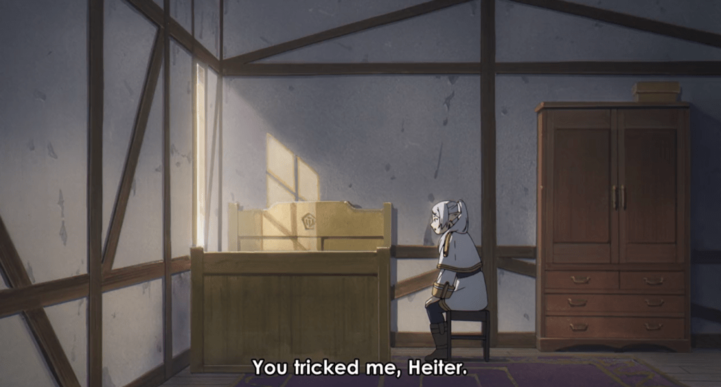 In the simple dialogue Frieren and Heiter exchange it’s easy to see how deeply they trust each other, despite Frieren being dense as lead about Heiter’s general feelings. It’s also nice to see that she has already taken something valuable away from Himmel’s passing.