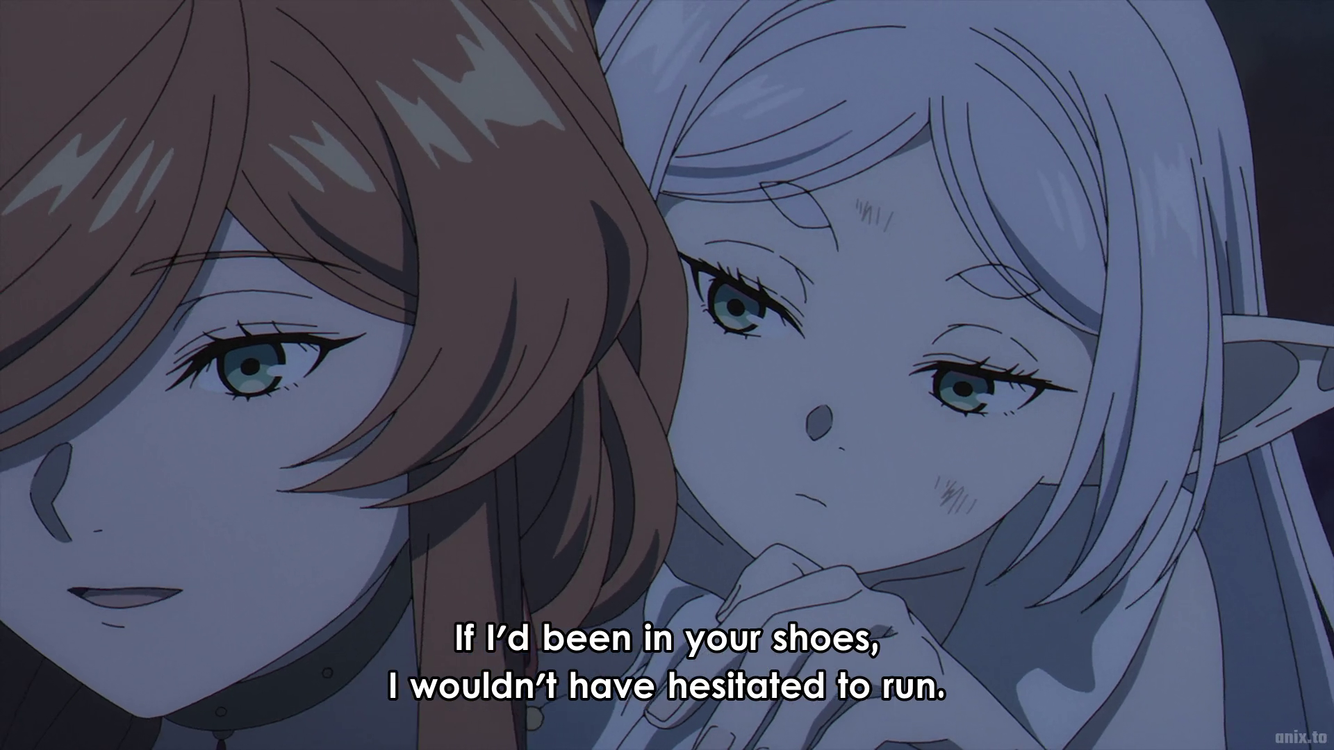 I say “yet” because I’m unclear if Frieren losing her whole village to demons is part of the reason she’s so emotionally stunted. It clearly sealed the deal for her in terms of her no-mercy take on demons, but it’s hard to ascertain much else about the situation since she’s apparently always been monotone/emotionally subdued?