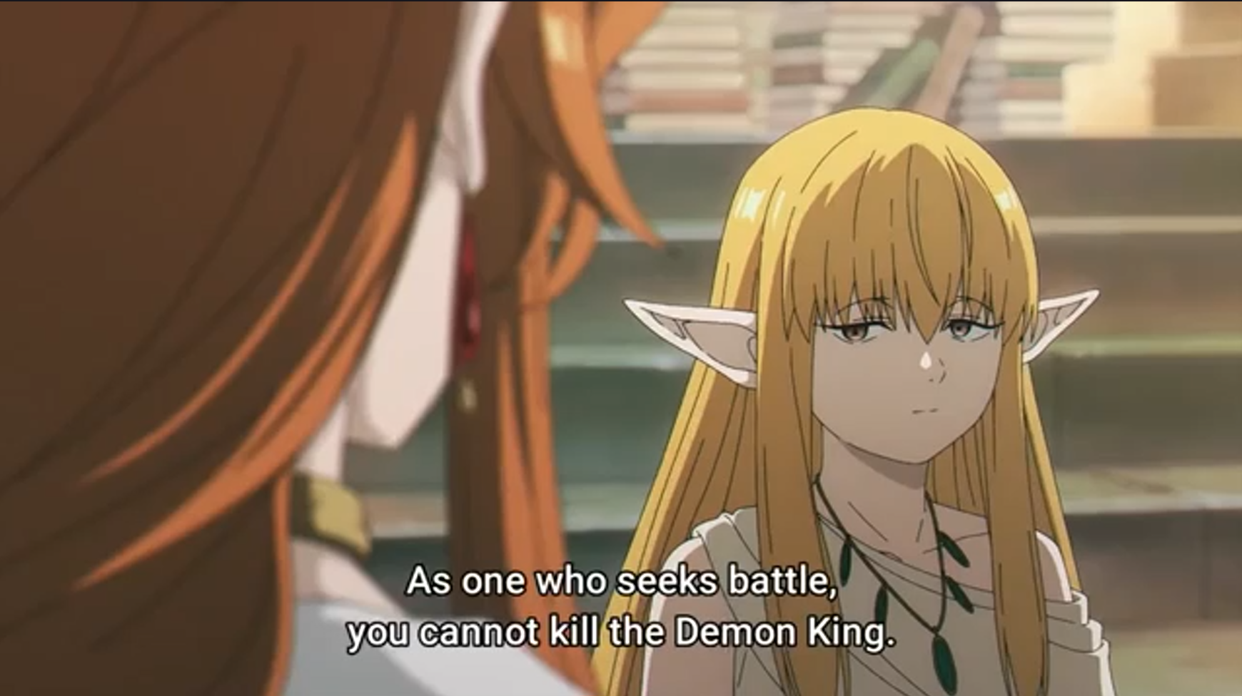 Flamme continues, explaining that only Frieren, who knows a peaceful era, can defeat the Demon King and bring about another peaceful era. It’s an odd explanation for someone that Flamme met just after she’d killed a demon that had wiped out her entire village, but hey, I’m not humanity’s most storied mage, so what do I know.