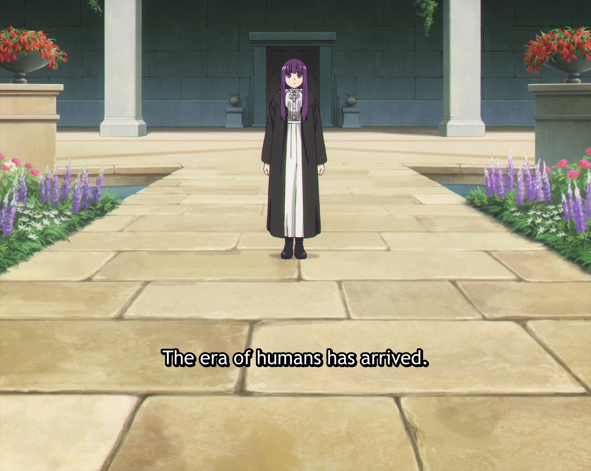 I feel like the drama in the first part of this episode is slightly undercut by not giving us all of the context for Fern and Frieren’s argument, if there even was an interaction that could be described as such (Fern’s reactions are not always… proportional, but they must not have come to an understanding before they parted). At the very least, I would have appreciated a snippet where Frieren actually takes it upon herself to have it restored, since it’s clear when we first see her that that’s what’s going on.