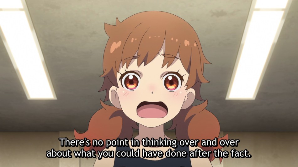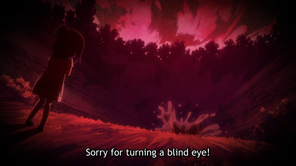 Throughout recent episodes, Shizuku has been thinking back to more and more moments in her friendship with Yoka, wondering what she could have done differently and slipping deeper into regret. The theme of this episode is moving past that regret and focusing on what can be done in the present, which I suppose is meant to galvanize Shizuku. While I appreciate the sentiment being expressed, it doesn’t really feel like this has held her back in any meaningful way. Shizuku has still been able to thwart tiny military battalions and fend of zombie hordes – she’s not exactly wallowing in her pain.