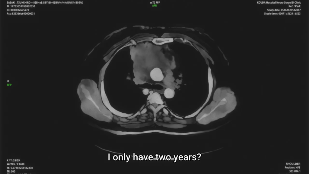 Right after that, he’s in the pachinko parlor, noting that this is how he spent his time even before the diagnosis, when these three show up.