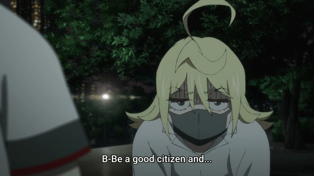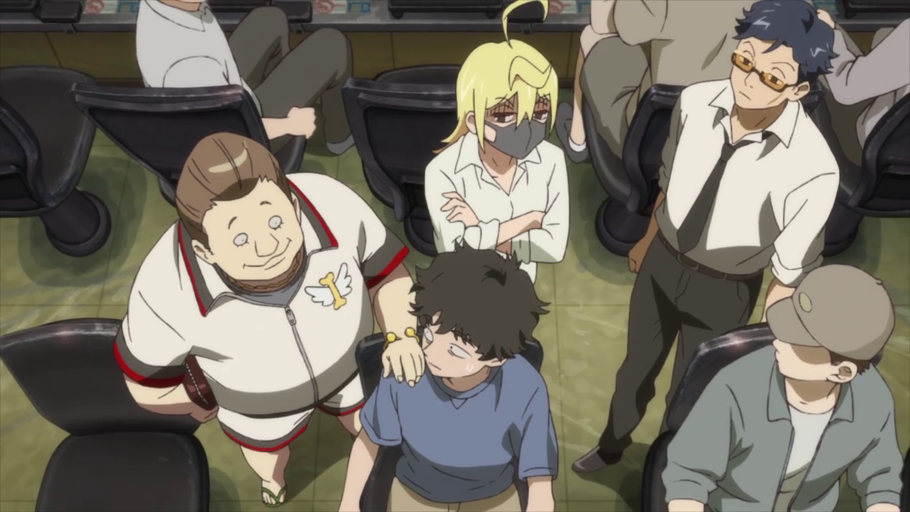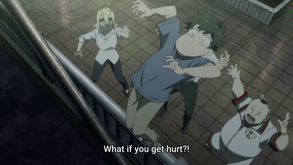 This kicks off another chase as Sasaki runs for it again, already setting these guys up as the Team Rocket of loan sharks, more endearing than dangerous. As they corner him again and he starts to climb to dangerous heights, what sealed the deal was the three of them legitimately worried for his safety.