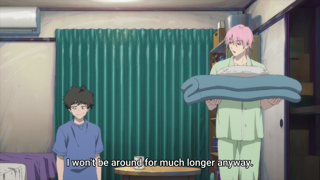 Another item I want to point out is the strong balance between serious and playful that the the show is towing the line of. There’s a dark cloud over Hiro who is essentially suicidal and content to gamble away every penny he owns as he awaits his eventual death. His snide remarks about death trouble Taakaki who scolds him for his attitude, and the end of the episode hits hard. We realize that even if Hiro has found a moment of happiness with his new friends, his problems are lurking right around the corner. It’s only been two episodes, but I hope the show continues to play with these two pieces throughout because it paints a picture of what real life is like for many people.