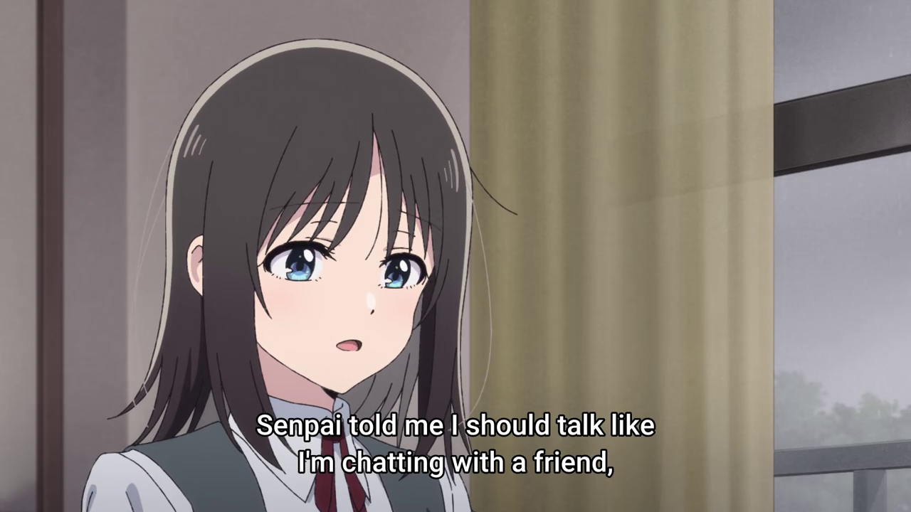 I think a perfect example of why I often feel exhausted is the exchange between Hana and Miiko. Hana has been advised that ad-libbing is like chatting with a friend. And so of course: