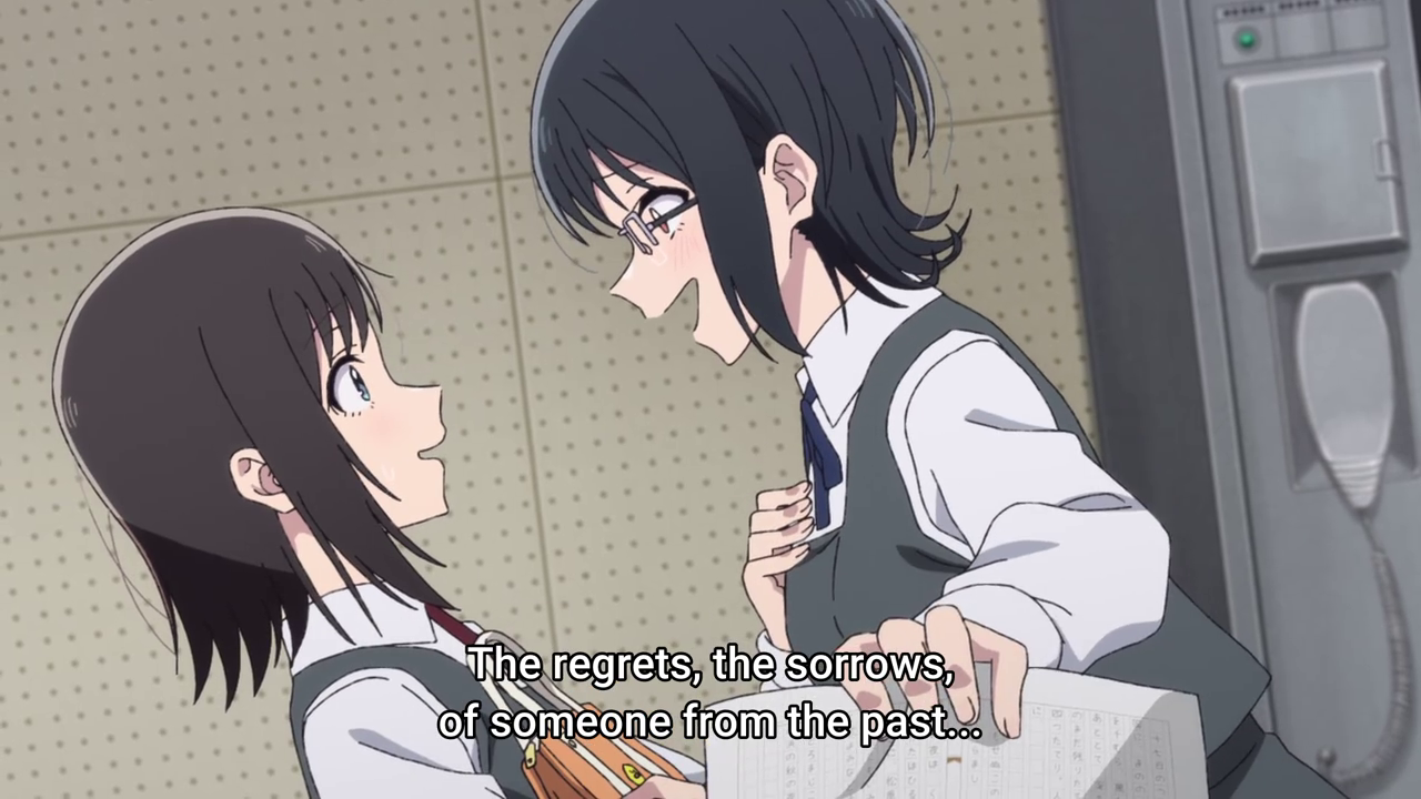 Hana is taking her practice seriously, and this extends to reading through each of the recitation pieces on offer for this year’s competition. In this episode, she’s reading The Sarashina Diary, a piece of classic Japanese literature. Anne is against it because it can be hard for modern audiences to understand old-timey turn of phrase, but Ryoko is all for it because classic literature is her passion. Hana is also invited by Mizuki to participate in the daily radio show the club puts on for the school during lunch, but she almost immediately clams up and doesn’t say a word when she has to ad-lib. Her classmate Miiko gives her some advice on how to get some ad-libbing confidence.