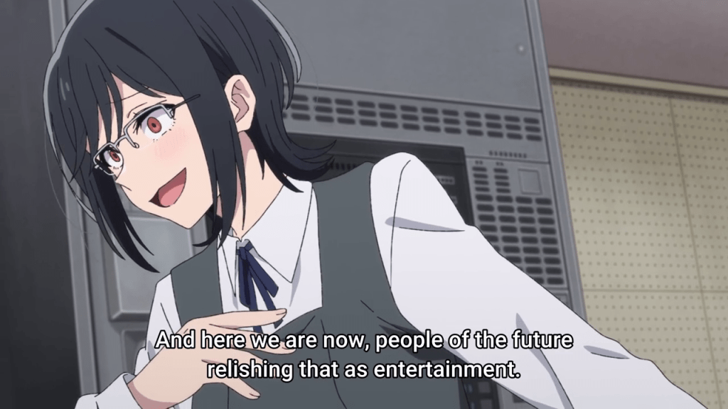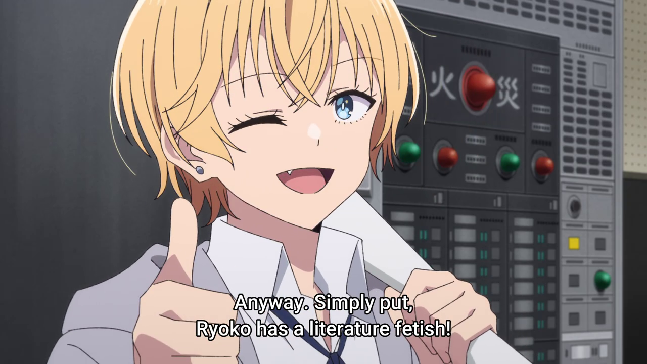These have just been the preliminaries, though. A warmup act. Because whatever is going on with Ryoko has me skeeved out. I mentioned above that she is a non-entity, and that has largely been true thus far. This episode she gets a scene to herself, where she gets to nerd out about classic literature with Hana. Let’s see how that goes.