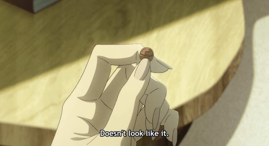 Lastly, I wanted to call out a specific scene for attention. When inspecting Skinner’s house, Christine finds a pill in a couch cushion, but it isn’t Hapna.