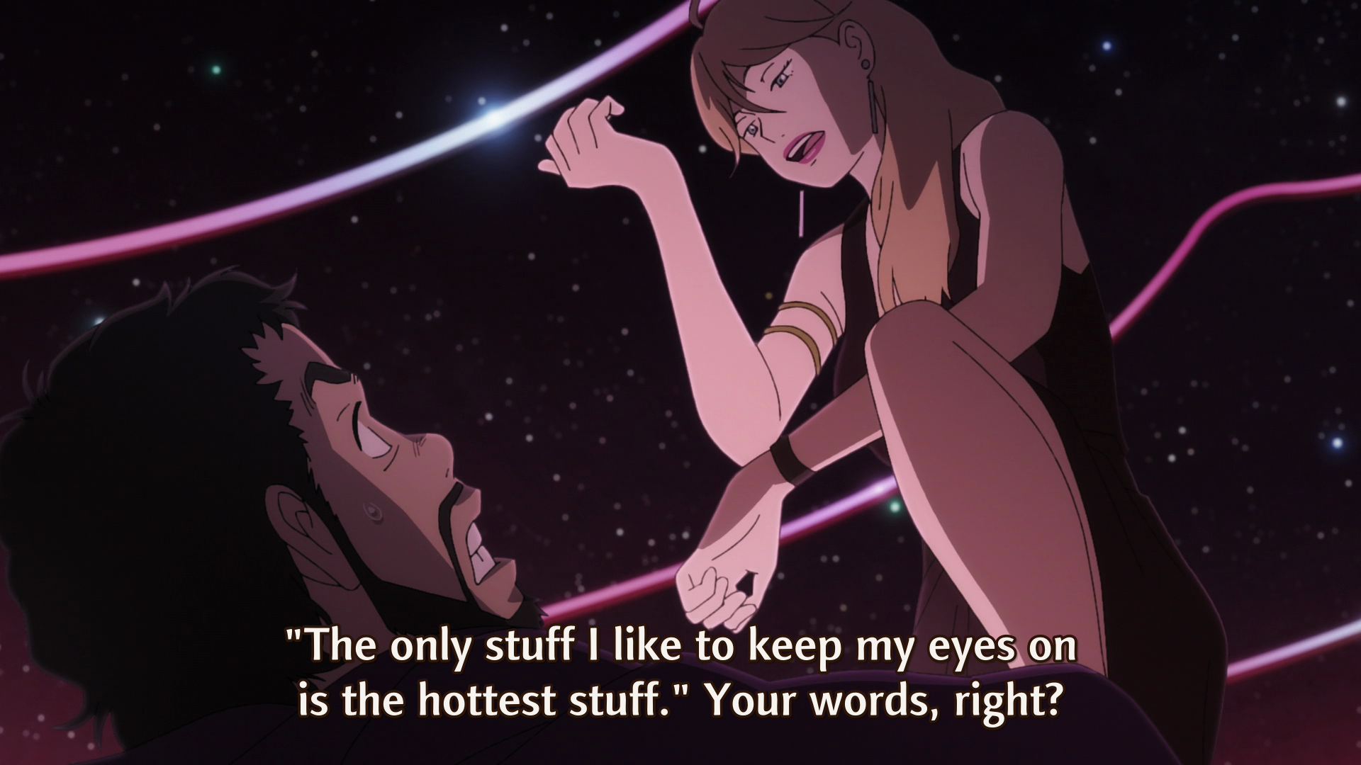 I also wouldn’t be surprised to hear that Watanabe and/or some of Lazarus’ writing staff are fans Western action films like Mission Impossible, James Bond, and Oceans 11. This episode’s mission of having to infiltrate the club and find a super hacker is something straight out of a heist scene. It’s got some sex appeal, some savvy tech, and lots of ass kicking. Oh right, did I mention there’s also a helicopter chase?!