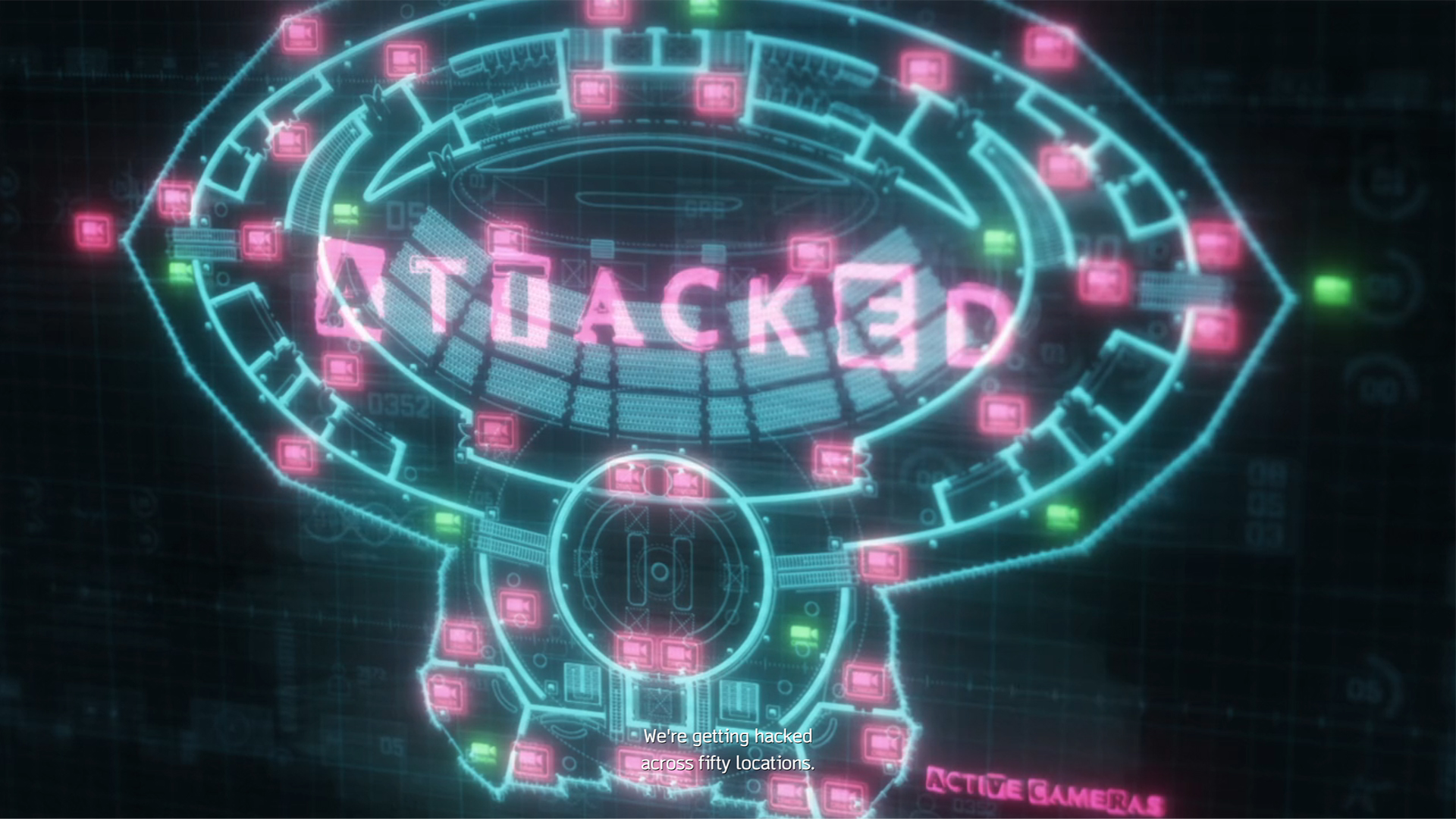 Once the conference is breached and an outside hacker starts burning through their defenses, the team is seriously on the back foot. The chaos that erupts as everyone scrambles to avoid malfuctioning security bots and out of control HVAC systems is funny, but has a real Benny Hill feel to it that doesn’t quite mesh with the dire situation. I get that it’s hard to make a scene where two nerds furiously punch keyboards exciting, but it does feel like a mild letdown after last episode’s kung fu club/helicopter chase.