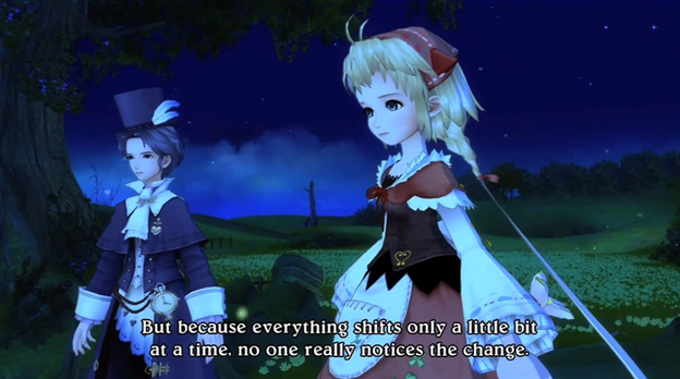 I’m not gonna lie, I thought this cutscene was hilarious. It was so dramatic and intense and Polka was well…staring into a puddle. Good job Japan! I definitely believe Polka’s mom has gone through something intense and potentially tragic. I hope she has some purpose in the plot!