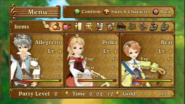 They really went all out on this. Everyone and every place has a musical name, the menu promises we will have piano pieces and musical scores to collect. Heck, even the scroll bar in the save menu is a set of piano keys!