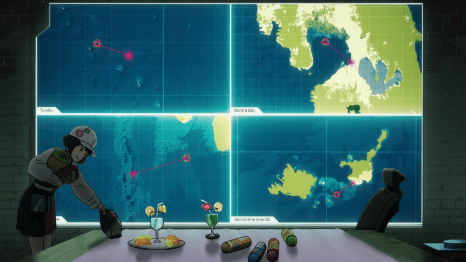 Doug decodes the data recovered from Naga and discovers coordinates to four islands Skinner purchased. These islands have sunk into the ocean currently so the crew decides to split up and explore them for clues. Axel goes to The Maldives, Christine goes to Tuvalu, Doug goes to Manila Bay (Philippines) and Landen goes to Ishigaki Island (Japan). Elena monitors them from the base and eats snacks.