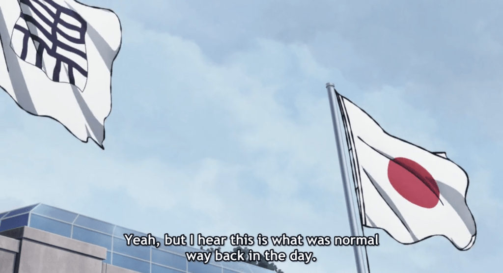 Lastly, an observation about the plot. There have only been hints so far, but something isn’t quite normal with the setting. Despite the normal-looking school setting, with desks, chemistry lab, and teachers all looking modern-day, some of the things the students say and some of the backgrounds are piquing my interest.